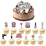 - 🍰【Maquillage Cupcake Topper】 12pcs décorations de cupcake à thème cosmétique avec différents styles et 1 décoration de gâteau joyeux anniversaire, des designs exquis et beaux se démarqueront sur votre décoration de gâteau de fête d'anniversaire.