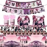 Décoration Black-pin, Blackpin Anniversaire,85 Pcs Groupe de Fille Kit Vaisselle Anniversaire, Inclure Nappe,Ballons en Latexr etc,Décoration D'anniversaire des Enfants