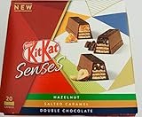 Les différents parfums disponibles pour les KitKat Senses sont chocolat au lait, caramel salé et noisette.